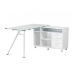 The Margolis Augusta is designed for a multitude of uses, the Augusta workstation is perfectly placed in a corner, flat to a wall or as a room divider. The corner design maximises storage space and invokes an inviting ambience to any office. The August features a stunning frosted glass work top perpendicular to a white PVC storage pedestal, complete with 3 drawers and 5 additional storage compartments. The satin handles and feet perfectly complement the brilliant white desk, and are adjustable to give a level work surface.