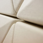 Margolis Bits wall can be freely combined to create different pattern formations. Using a triangular shape not only produces an aesthetically attractive look, but also effectively breaks the sound waves, which makes a better acoustic environment. The product is mounted on the wall by using hidden hanging rails,allowing the panels to be hung either horizontally or vertically and offering users the flexibility to create both symmetrical and asymmetrical pattern formations.