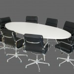 Oval Shaped Boardroom Table complete with Brushed Metal Legs and 25mm Top.