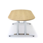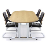 Chiltern takes the classic aesthetics of the real wood veneer tops from the Corniche and Hi-Line ranges and melds them with a sleek and highly durable arched metal leg, within immaculate polished chrome surface.