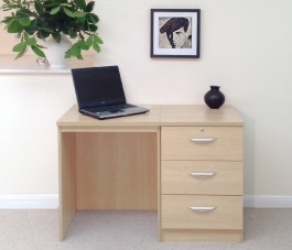 The Margolis Dallas is a traditional style desk boasting a wealth of storage space, in a beautiful Beech effect with chrome handles. It features a central lockable drawer, along with 3 additional stationery drawers, storage cupboard and 2 storage compartments, making the Dallas both functional and attractive.