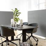 Abstracta together with designer Stefan Borselius has taken on the challenge of developing a sound-absorbent screen system beyond the ordinary. A solution as simple as it is striking. Domo’s dynamic visual expression arises in the interplay with the light and shadows formed by the bevelled edges. The invisible magnet connection enables screen combinations without visible brackets, which might otherwise compromise the overall impression. Domo offers scope for playful combinations of different sizes and colours. The series includes a table screen, floor screen and wall absorbent.