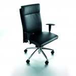 Upholstered swivel chair with high back adjustable armrests gaslift synchron mechanism and castors.