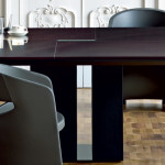 Rigorous clean design, for the single Executive Desk, made of fine and elegant materials. A directional system that combines, with perfect balance, aesthetics and functionality between operational areas and discrete service elements.