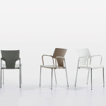 Conference chair with or without arms, 4 legs chromed frame. Plastic version, with only seat or upholstered seat and upholstered back.