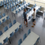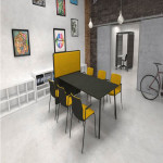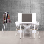 The table has integrated castors on two legs that allows one person to easily move the table, even when the Margolis FourReal partition is attached. Imagine furniture that creates a private space that can be stacked, folded and moved around the room – by one person.
