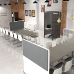 By simply clipping the Margolis FourReal space-in-space partition to the FourReal table you create small intimate work areas in larger rooms. The clever design allows one person to quickly create a workspace with improved acoustics and a sense of privacy. FourReal is a folding table designed to be used on its own or with the partition; the rounded shape perfectly complements the FourSure seating range.