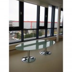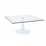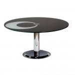 The glass table top is available in circular, rectangle or square, in a variety of different sizes.