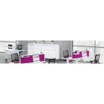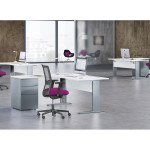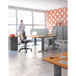 The Margolis Ideal is a traditional range of furniture offering stand alone desking solutions with an up to date design. Chose between a beam or modesty panel, L or I leg, standard or height adjustable. Choice of 6 finishes for tops ( white, maple,oak, beech, apple & walnut) and a choice of 3 leg frame colours( white, silver, dark grey). Add desktop screens or toolrails. Co-ordinating storage available