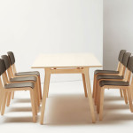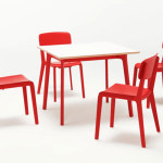 The Margolis Jonty Tables is available with square or rectangular tops and in five sizes. Exposed plywood edges, are clear lacquered, having a subtle cut-back convex profile. Tops are beech veneer or white laminate as standard. As with the chairs, frames and top edges can be solid colour lacquered.