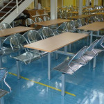 Canteen unit with polished chrome perforated metal seat with fully welded powder coated frame.