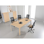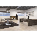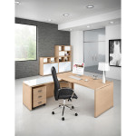 Kara from Margolis carefully combines wood & glass to create elegant executive suites of furniture. Aligned & non aligned returns & giant pedestals can be combined to give the size of working area suited to the space available. Chose between amber walnut, zebrano light oak & royal broawn oakdecors. Tops are 38 mm thick. matching storage & meeting tables available. Combine with Multi-meeting for matching boardrooms.