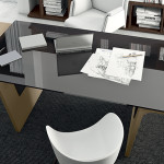 The beauty and originality of this collection consist in the fact that legs, tops and brackets can be combined in different versions by making an exclusive and unique work system. The structure is conceived in order to arrange the office with multiple solutions: desks, extensions, service element, pedestals, coffee tables, meeting tables and cabinets.