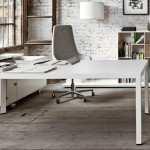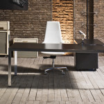 Design desk Frame by Margolis : the minimalist allure of chrome perimeter structure, the chromatic and material feelings of the wooden plan, in melamine or white and black glass. Two extremes representing a new way of interpreting and living in both executive and professional offi ces with Frame + Executive.