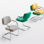 Sitting waiting with upholstered seat and back and sled base chair in chromed metal. Bracciolini coated or black plastic.