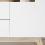 Named after the traditional A4 paper proportional scheme called ISO 216, the sculptural collection of storage units is configured using the familiar poetry of the A-series. The Margolis No. 216 storage collection explores the concept of the aspect ratios of the A0 and the A6 in two new sizes, launching a large horizontal sideboard and a small mounted unit this spring. Using the magic behind the A-series to experiment with doors, open shelves and colour tones, we present a complete series of functional storage items with playful and warm characteristics.