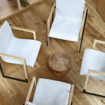 Constructed with a 30mm birch plywood frame, matt varnished and a 30x15mm powdercoated steel. The backrest is a one piece beech plywood, or can be upholstered in fabric or leather. It is also stackable up to 5 chairs.