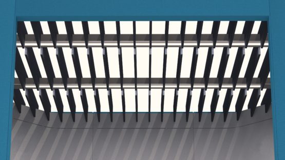 This is a modern and sleek looking booth, that is not only functional but aesthetically pleasing. The louvre ceiling adds a unique and attractive appearance, but is also practical – as the openings allow the fire sprinklers to come through. This means no additional safety tests need to be performed. There are integrated LED lights in the ceiling.