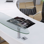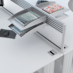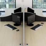Margolis Optima Plus Desks have been designed with emphasis on wire management solutions. The design enables the swift and effective installation of desk top hardware via discreet apertures in the modesty panels, and removable rises within the leg upright. Multiple options and configurations available.