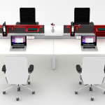 The Margolis Podium screen system is a stylish and functional alternative to standard screen systems. Designed around an aluminium base rail system, Podium can be configured with a number of panel options that include Acrylic, Fabric and Mesh which are then complimented with functional accessories such as monitor arms and paper handling trays.