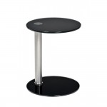 The design is simple and elegant. The off-centre column is available in a choice of Cherry, Walnut, Wenge and Stainless Steel colours. This ensures that this small glass table blends in beautifully with your existing Reception furniture.