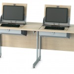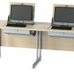 Innovative desktop design. For Right or Left Handed use. Quickly folds the monitor keyboard and mouse into desk.