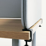 The Margolis Softline 50 table screen, shelves can be mounted, but not in the screen corner. For each screen a pair of fittings are needed. Effective fitting gap measure: 37 mm for mounting on table top. 37 mm width is to be used for table top fitting only. 77 mm width for fitting on table top and underlying frame.