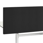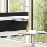The Margolis Soneo Table Screen thickness is 50 mm or 30 mm. Bottom of the screen is 133 mm below the edge of the table. Fittings in aluminium colour (included) are fixed directly to the underside of the table with screws. A function rail can be added to store different kind of accessories for the workspace, only on the 50 mm screen.