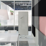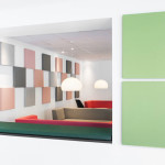 The Margolis Soneo Wall is Functional creativity through sound-absorbing squares. Soneo Wall is a simple and yet stylish system of wall panels based on square, sound-absorbing and coated panels. The Soneo Wall panel is so simple in its style that it is the fabric that sets the tone of the product. The product provides a wide range of variations in patterns and colours. The panels are available in several sizes, and the mounting is hidden. Soneo is also available as a floor screen and as a table screen.
