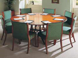 This meeting room table is constructed with real wood veneers. The wood is sourced from sustainable forests whereever this is possible, ensuring renewal of the forest. The veneer choices for this table range from Crown and Quarter Cut to Burr and Curl and exotic veneers. Other veneers can be supplied according to availability.