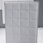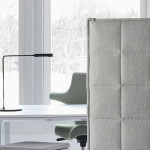 The Margolis Stitch is a combination of thick lined fabric with embroidered check patterns and lacquered ash legs brings out a sense of expressive softness. The combination of different materials in the screen adds further acoustic values.