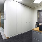 The system is designed to be built in continuous runs, levelled and secured by our unique track and height adjusters to either a ceiling grid or soffit. Both the built in or dividing units can be dismantled and relocated without major disruption to the buildings floors and ceilings.