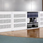 Sliding door storage with acoustic properties