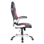 When it comes to design the Margolis Talladega Racing Chair is in pole position! This modern, racing chair offers a stylish and unique addition to any home office. Manufactured to the highest quality; this faux leather chair has padded retractable arms and plush padding on the seat and back, with height adjustment and traditional tilt mechanism with tension control. Finished in black and red faux leather with a silver base and arms.
