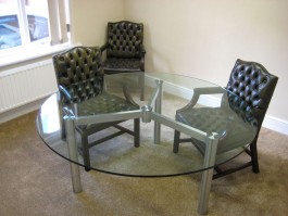 This creative glass architectural table is available with either Circular or Square glass top options. Choose from Clear, Coloured or Frosted glass finishes in various different sizes.