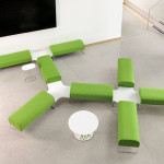 Margolis Touch is a family of products with benches, connecting tables, high and low stools and a matching coffee table. Touch benches and connecting tables are simple practical units designed to allow clients the flexibility to use space efficiently. The quality components, such as the thin high tensile steel chrome legs, facilitate the simplicity of the design. The bench and table units are free-standing to ensure total flexibility. Beautifully simple, the modular design means that Touch looks good as a single bench or as a large configuration to dramatically fill an atrium. The Touch coffee table and matching stools offer a stylish solution for informal breakout areas, and the high stools perfectly complement the poseur Asteroid table.