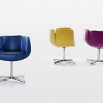 Shell in padded wood, with base blade 4-spoke chrome or chrome round flat base. Available in synthetic leather and leather with white lanyard, or to match the finish.