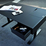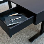 U-Desk is available with black or white frame. Table top in black or white Nano Softlaminate. Drawer can be purchased with front in white / black Nano Soft laminate, oak, black oak or walnut veneer.