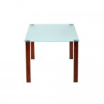 This square glass meeting table is available in a wide range of customisable options. Take your pick from Wenge, Walnut, Stainless Steel or Cherry legs. Choose from a variety of different sizes of glass table top.