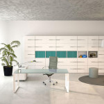 The Margolis Versus, it is distinguished by the simplicity and linearity of its forms. A new Office & Co product. with aluminum or white structure and particular leg ring. A balanced and elegant proposal for the executive and meeting environment.The desktop with is available with the following melamine finishes: wenge, acacia, walnut canaletto or frosted glass, with numerous possibilities of combinations. Library, wardrobes and cabinets complete the environment with harmony and efficacy.