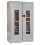 The toughened polycarbonate view panels are set within the steel door, which has an all-round strengthened edge. A reliable lock ensures all stored materials are secure when not in use.