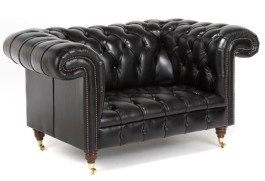 Traditional features such as deep buttoned upholstery are expertly crafted along with hand pressed brass studding. Only the best leathers and fabrics are available to choose from with for their furniture. Fine quality has to be consistent throughout the whole manufacturing process, from the wooden frame to the upholstery.